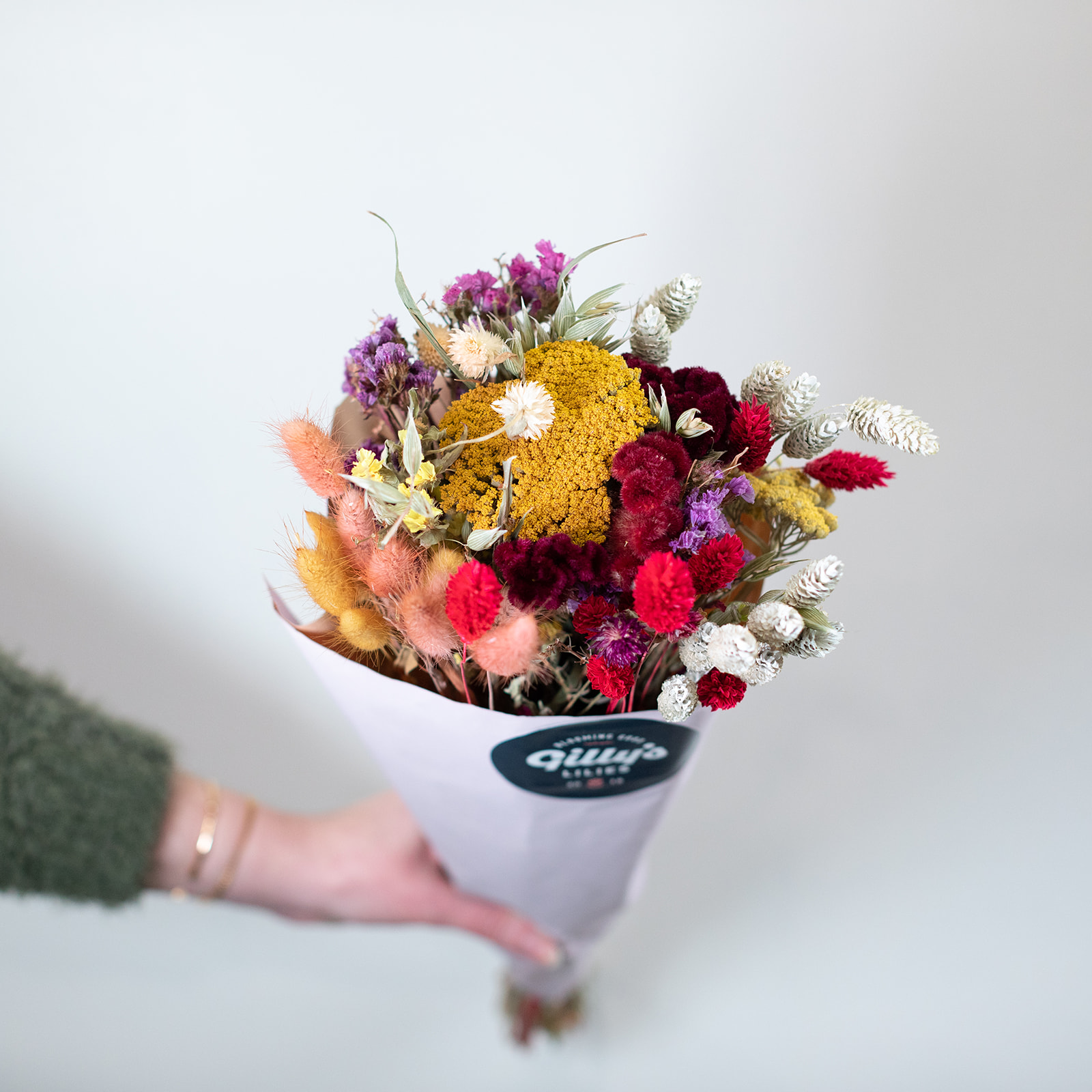 A charming bundle of carefully selected dried blooms, wrapped in natural kraft and tied with twine. Long-lasting, full of texture, and perfect for gifting or home décor. No water needed—just timeless beauty.